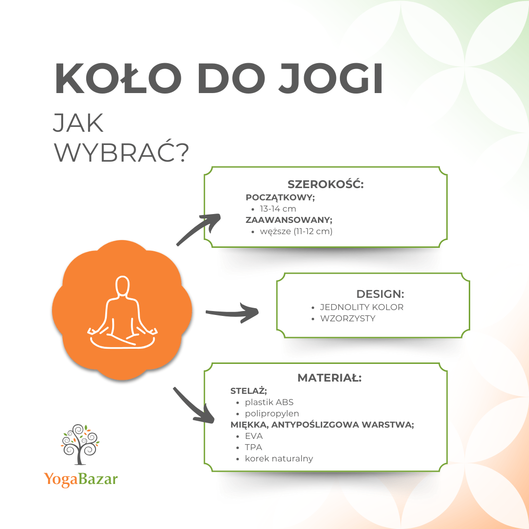 Szalona popularność kółka sprawiła, że na rynku istnieje dość duży wybór tych akcesoriów. Poszczególne koła do jogi różnią się od siebie wymiarami, materiałem i designem. Dlatego jeśli zastanawiasz się, na jaki model postawić, zwróć uwagę na te parametry. Ich dopasowanie do etapu zaawansowania, możliwości ciała i osobistych preferencji pozwoli Ci uzyskać maksimum korzyści z praktyki.