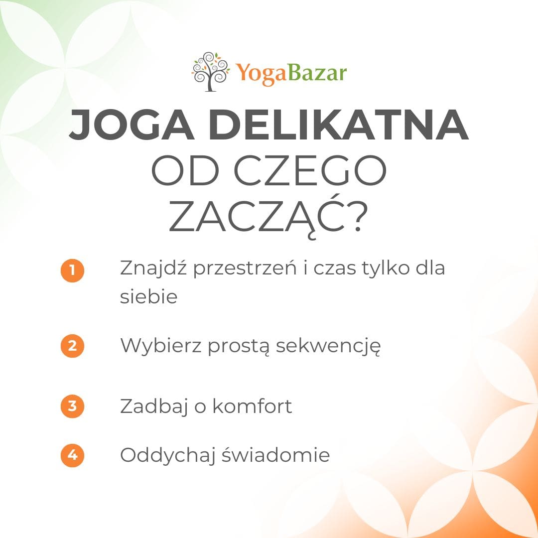 W odróżnieniu od dynamicznych stylów jogi, takich jak Vinyasa czy Ashtanga, delikatna joga zakłada powolne tempo, często z wykorzystaniem rekwizytów (np. koców, bolsterów, pasków), które zapewniają komfort i wsparcie. Warto także zainwestować w odpowiednią matę do jogi (np. Mata do jogi ECOPRO 4mm - granatowa lub Mata do jogi ECOPRO Diamond 6mm - Granatowy), która zapewni bezpieczeństwo i komfort praktyki. Praktyka ta może być również częścią terapii, szczególnie w pracy z układem nerwowym, lękiem czy bezsennością.
