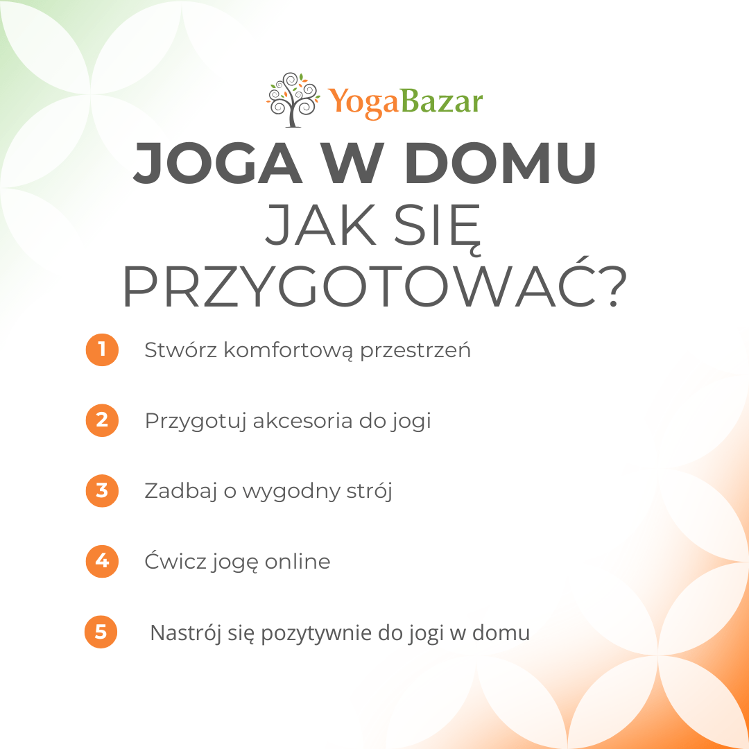 Najlepiej od znalezienia i przygotowania miejsca do ćwiczeń. Nie potrzebujesz dużej przestrzeni, choć oczywiście im jest ona przestronniejsza, tym większą da Ci swobodę ruchów. Najważniejsze jednak, aby udało Ci się znaleźć odpowiednio dużo miejsca na rozłożenie maty do jogi. Ponadto sąsiednia ściana, meble czy inne przedmioty nie powinny Cię ograniczać podczas praktyki jogi w domu dla początkujących.