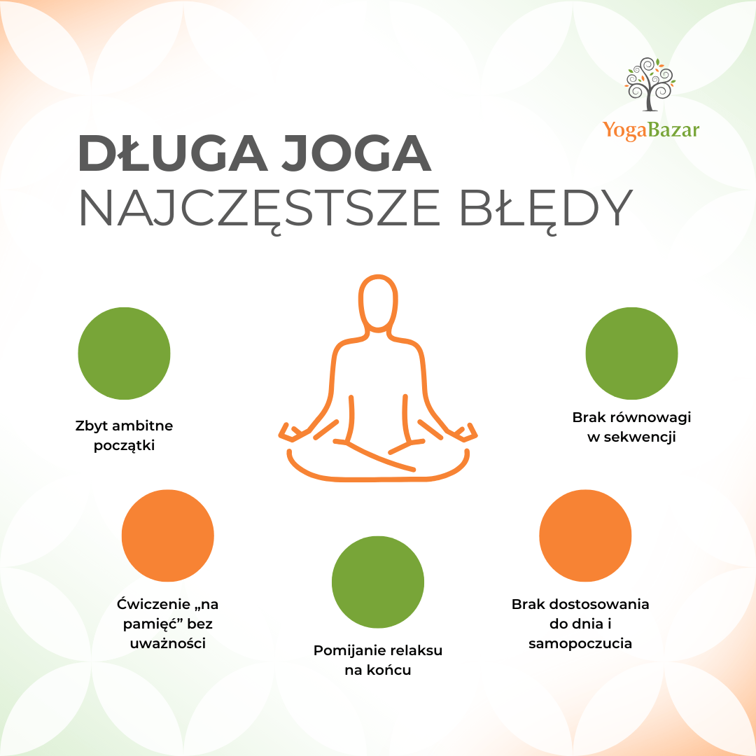 Zbyt długie trwanie w jednej grupie pozycji (np. tylko pozycje stojące) może prowadzić do przeciążeń. W dłuższej praktyce szczególnie ważne jest włączanie różnych typów ruchów: skrętów, skłonów, wygięć i pozycji odwróconych.
