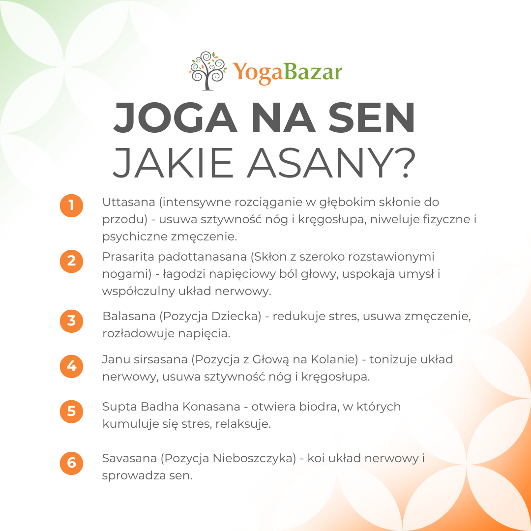 - Savasana (pozycja nieboszczyka) - koi układ nerwowy i sprowadza sen.