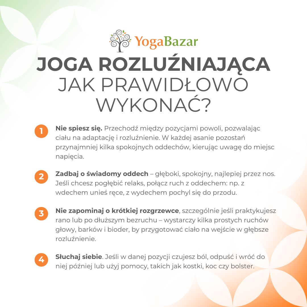 Choć joga rozluźniająca jest łagodna i dostępna dla każdego, warto pamiętać o kilku zasadach, które sprawią, że praktyka będzie bezpieczna i skuteczna.