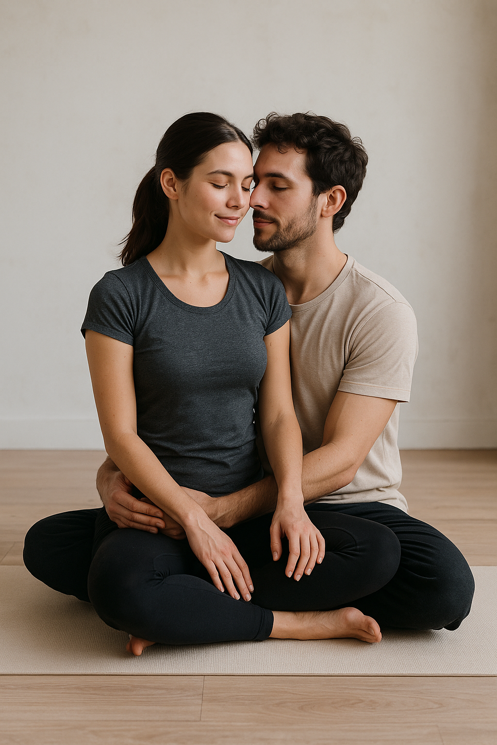 Pozycja partnerów w objęciu (np. Sukhasana z partnerem na kolanach)