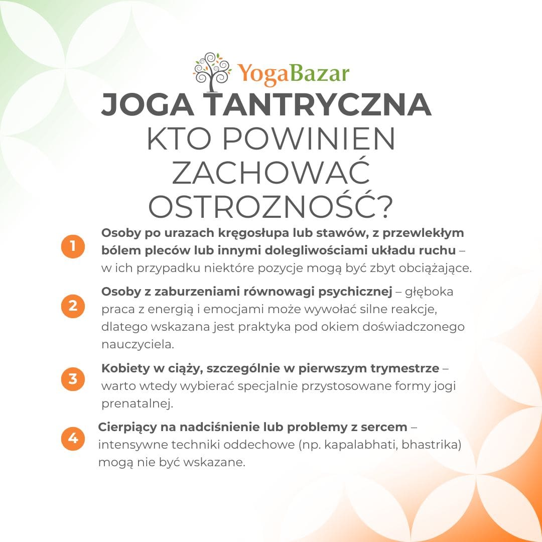 W razie jakichkolwiek wątpliwości najlepiej skonsultować się z lekarzem lub instruktorem, który zna specyfikę tej formy jogi. Przede wszystkim jednak – słuchaj siebie. Joga tantryczna to ścieżka świadomości, nie wyczynów. Bezpieczeństwo i komfort są zawsze ważniejsze niż „idealna” asana.