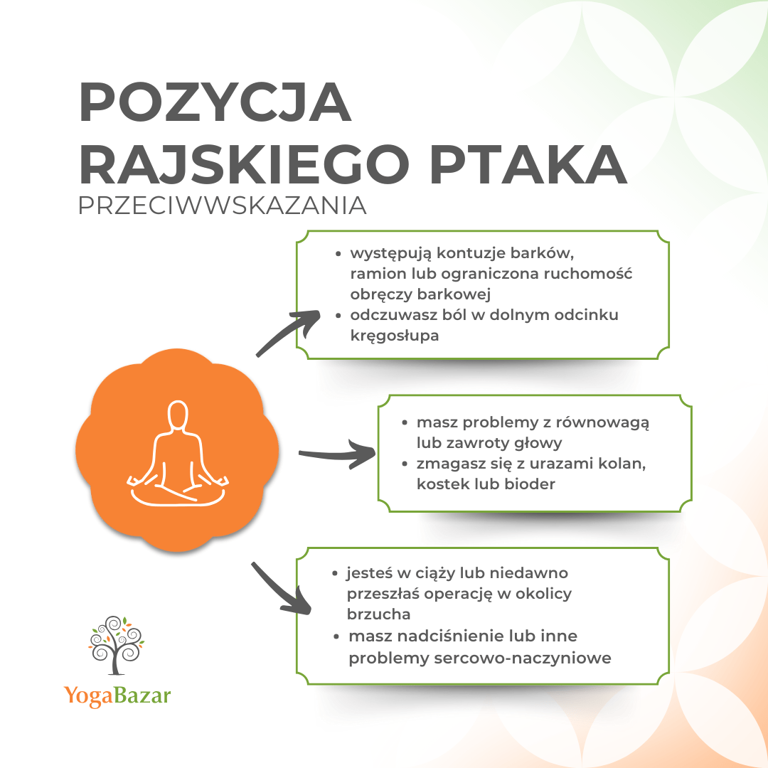 Tak – Rajski Ptak nie jest polecany przy problemach z kolanami, barkami lub niestabilnością stawów biodrowych. Jeśli masz jakiekolwiek wątpliwości, skonsultuj się z nauczycielem jogi lub fizjoterapeutą.