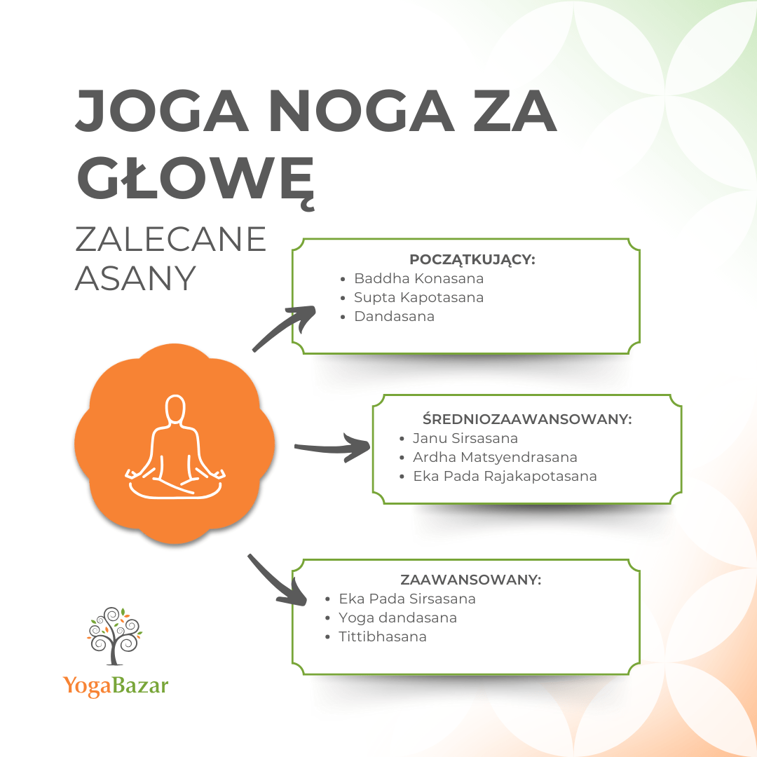 Oto tabelka podsumowująca podejście do pozycji „noga za głowę” – w zależności od poziomu praktyki.