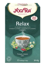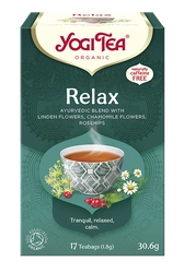 Herbata Yogi Tea Relax 30,6g to ziołowa mieszanka z rumiankiem, werbeną i lukrecją, stworzona z myślą o wieczornym wyciszeniu. Idealna do picia po praktyce jogi lub przed snem.
